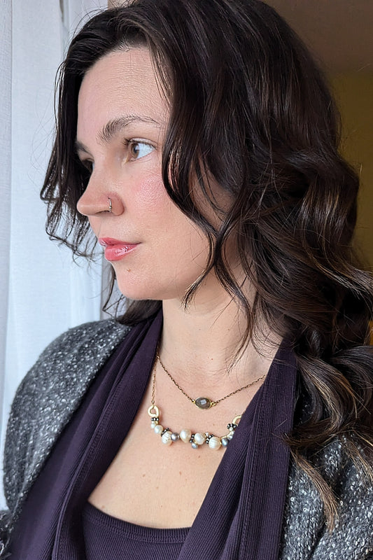 Handcrafted Brass Necklace with Fresh Water Pearls