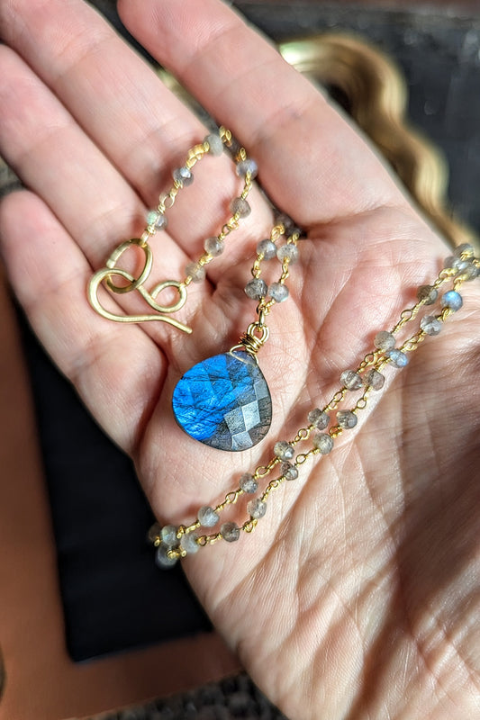 Handcrafted Labradorite Rosary Chain Necklace with Faceted Pendant