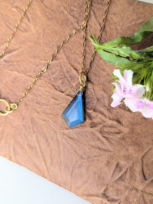 Faceted Labradorite Prism Pendant on Rich Low Brass Chain