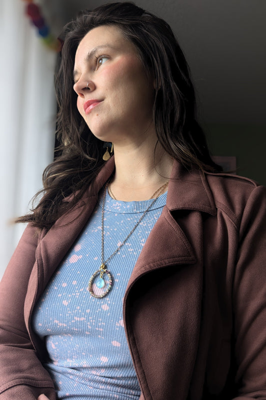 Handcrafted Aqua Blue Chalcedony and Fluorite Hoop Necklace
