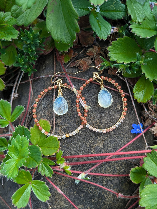 Pineapple Quartz Briolette Earrings with Orange Goldstone and Orange Rutile Quartz