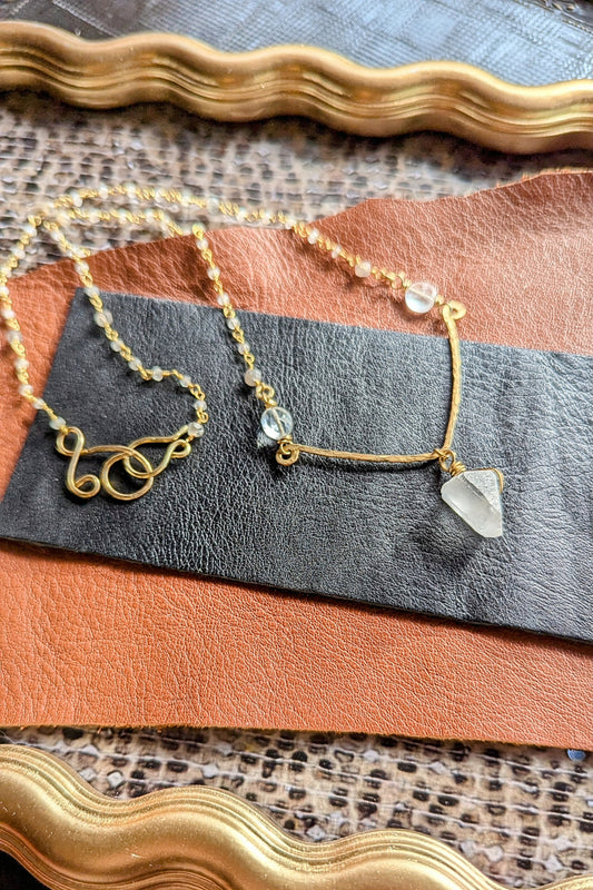 Handcrafted Clear Quartz Pendant Necklace with Moonstone, Labradorite, and Adjustable Closure