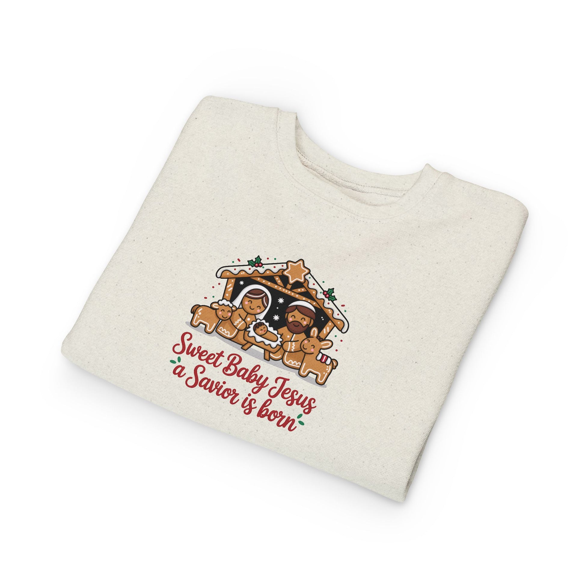 Toddler Sweatshirt - "Sweet Baby Jesus a Savior is Born" Nativity Christmas Pullover